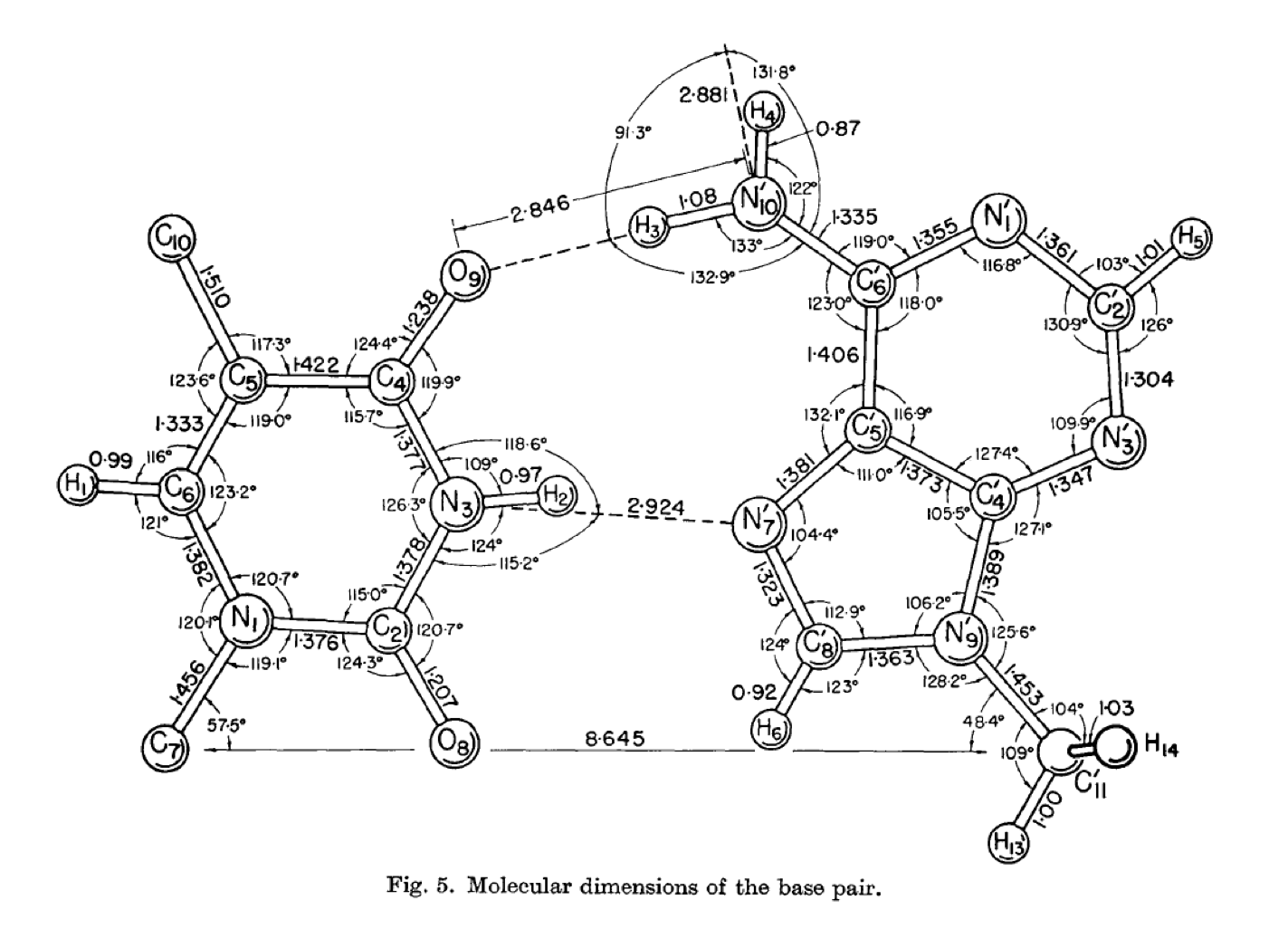 Interestingly he states that he did not have as much success with G/C pairings as with A/T and this I believe likely to be a result of the blocks that he placed on the respective N1 pyrimidine and N9 purine positions in accordance with Crick and Watson’s proposal. I mention in my publication that the geometric proposal would require N9 of guanine to be available to form hydrogen bonds, as was indeed the case prior to 1953 and Crick & Watson fixing the sugar position. It would be interesting to repeat Hoogsteen’s research, especially with respect to Guanine and Cytosine, without blocking any of the potential hydrogen atoms.